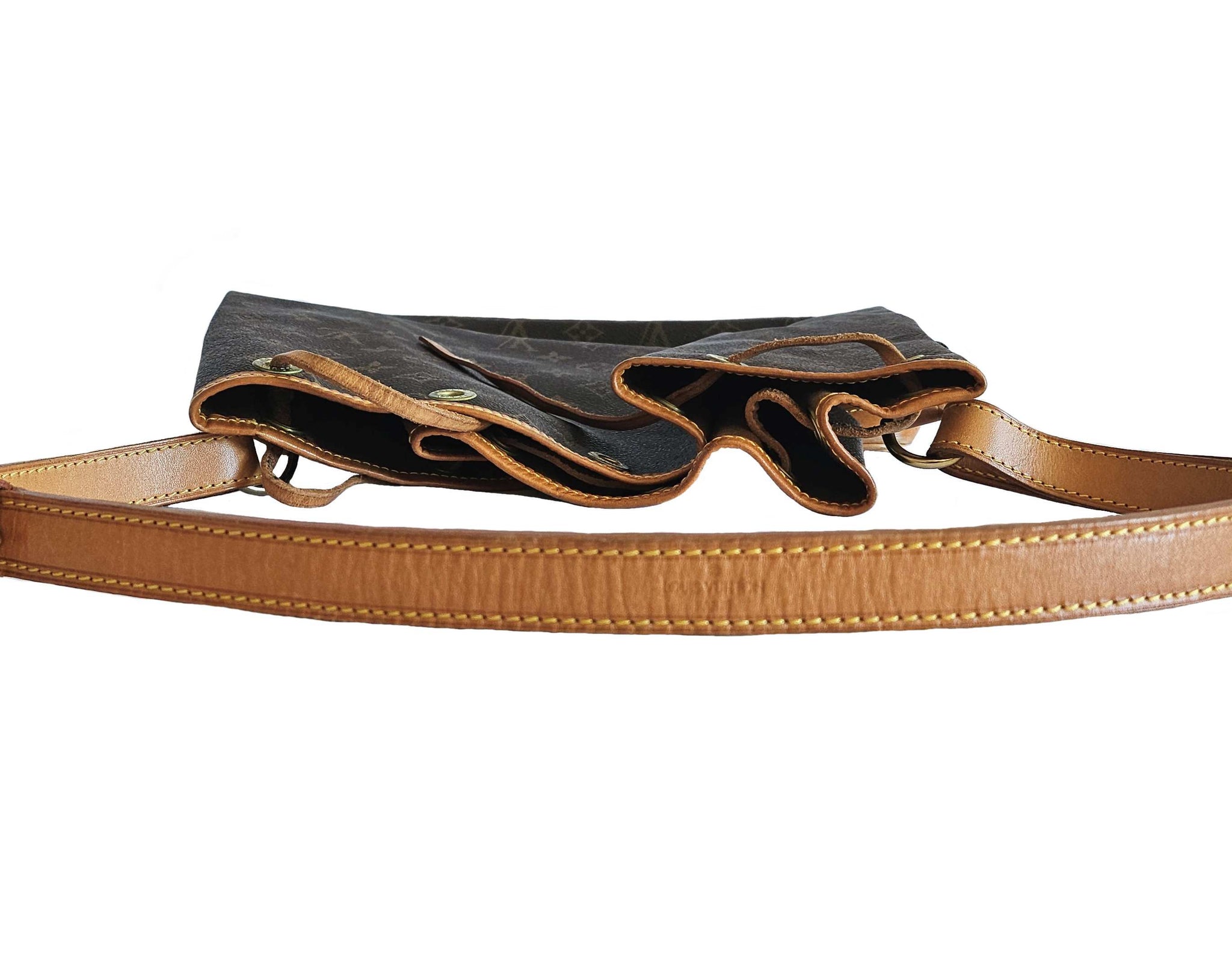 Crafted of Louis Vuitton monogram coated canvas, this classic buckle bag features vachetta cowhide leather trim and base, an adjustable shoulder strap, drawstring closure with brass grommets.  Brown fabric interior.