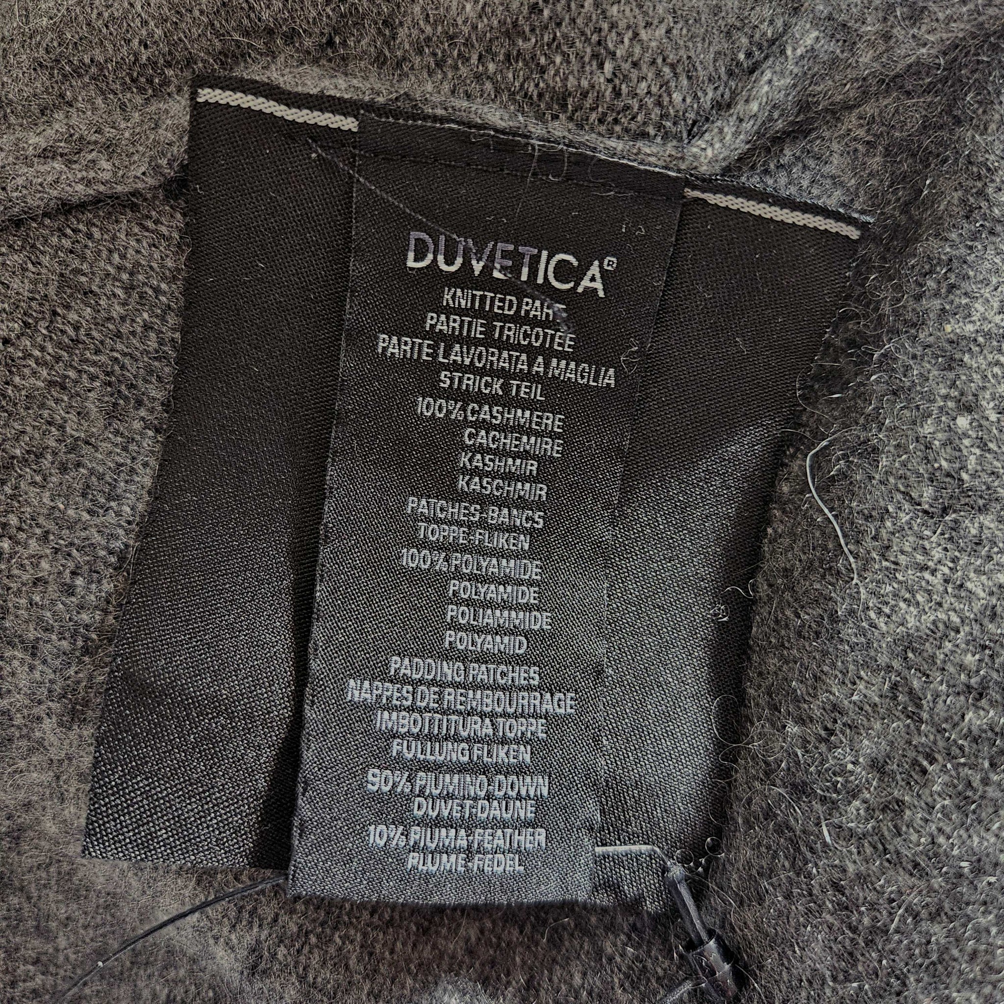 100% cashmere, patches: 100% polyamide, padding patches: 90% duvet, 10% feather