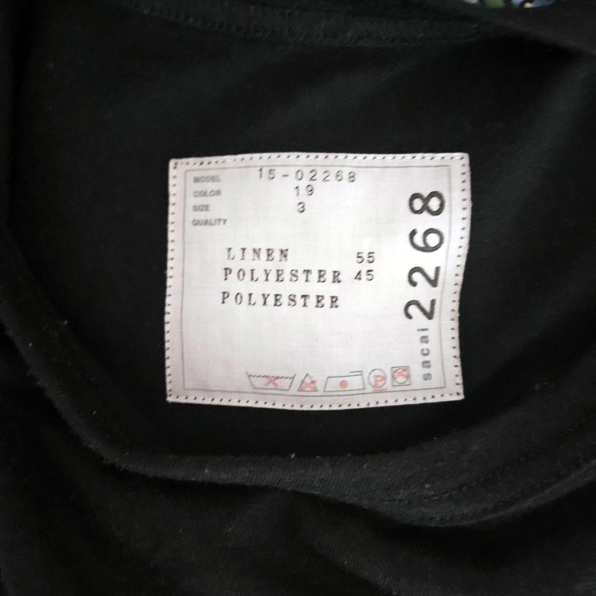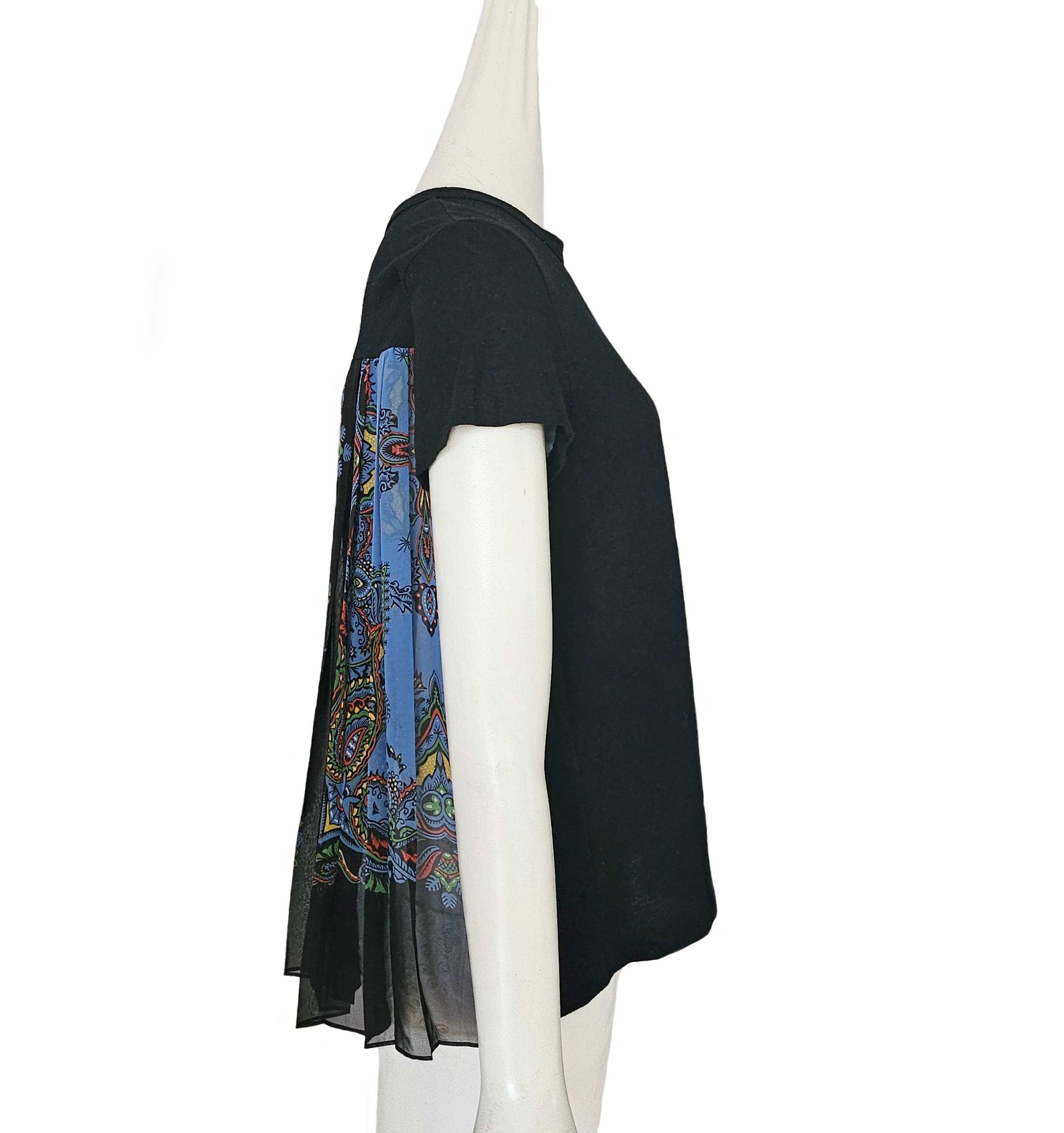A signature tee from Sacai, linen blend front with pleated floral back. Front pocket.