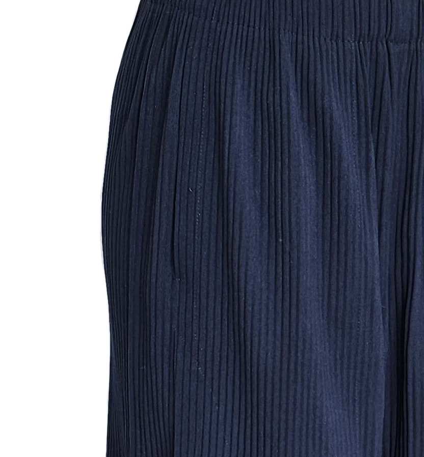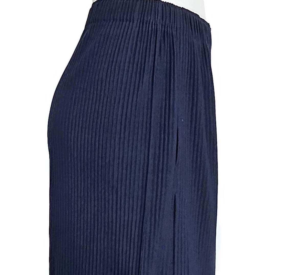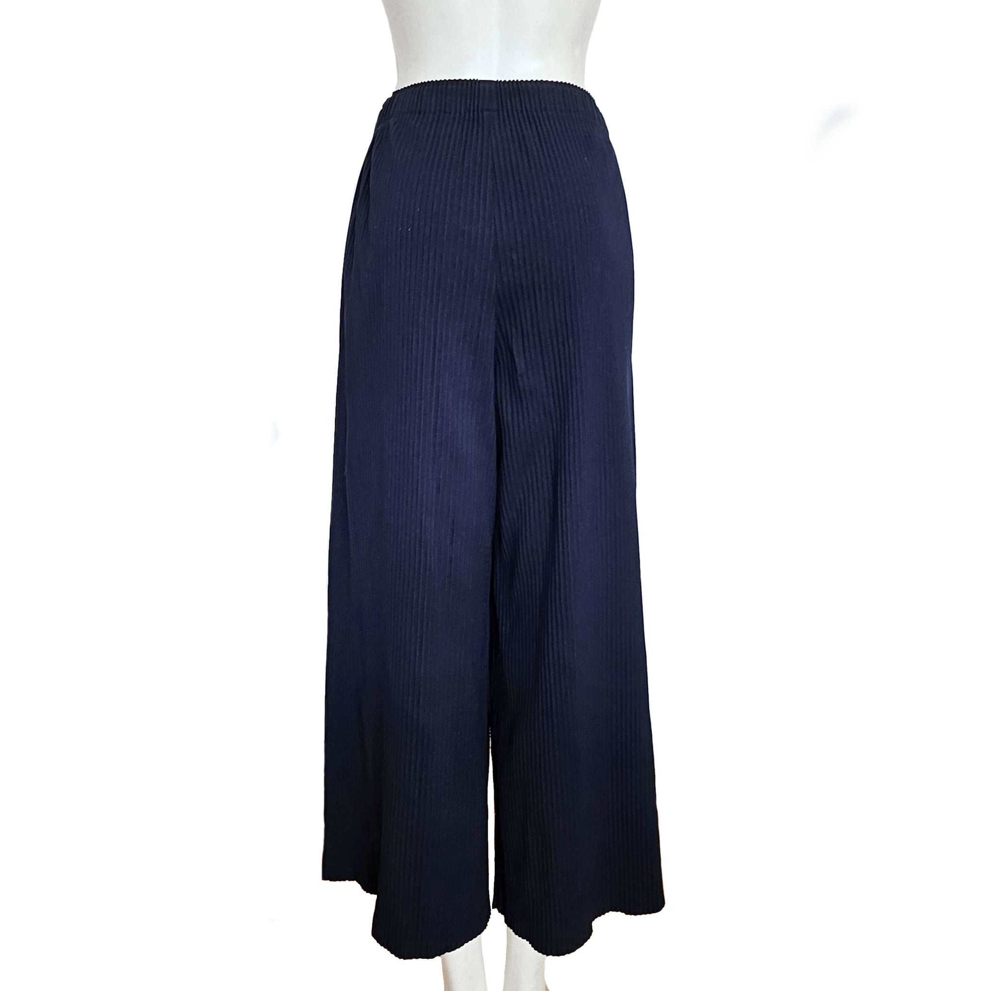 Made from a stretchy, knitted material, the pants feature vertical pleats, two side pockets and flyaway details.